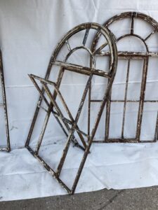 Set of four cast iron Victorian windows with central openings that lock by original brass catch.